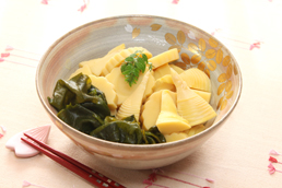 「おいし~いうどんだし」は煮物のだしとしても使用して頂くことができます。 若竹煮は竹の子とわかめを煮た春の旬の組み合わせです。 ふき、菜の花、鯛の子と合わせても美味しいです。 「おいし~いうどんだし」で作ると、味も色合いも上品な仕上がりになり、手軽に煮物を作ることができます。